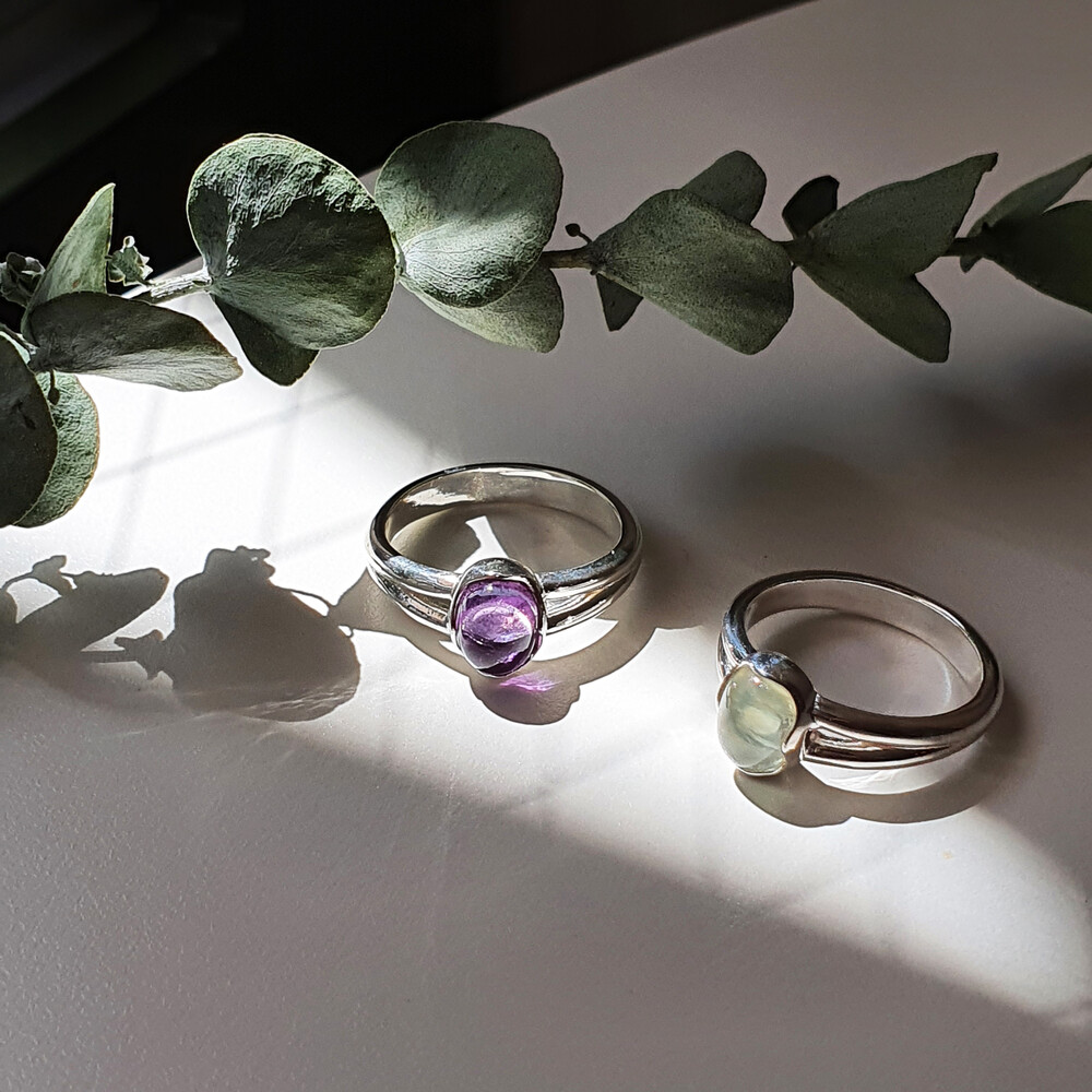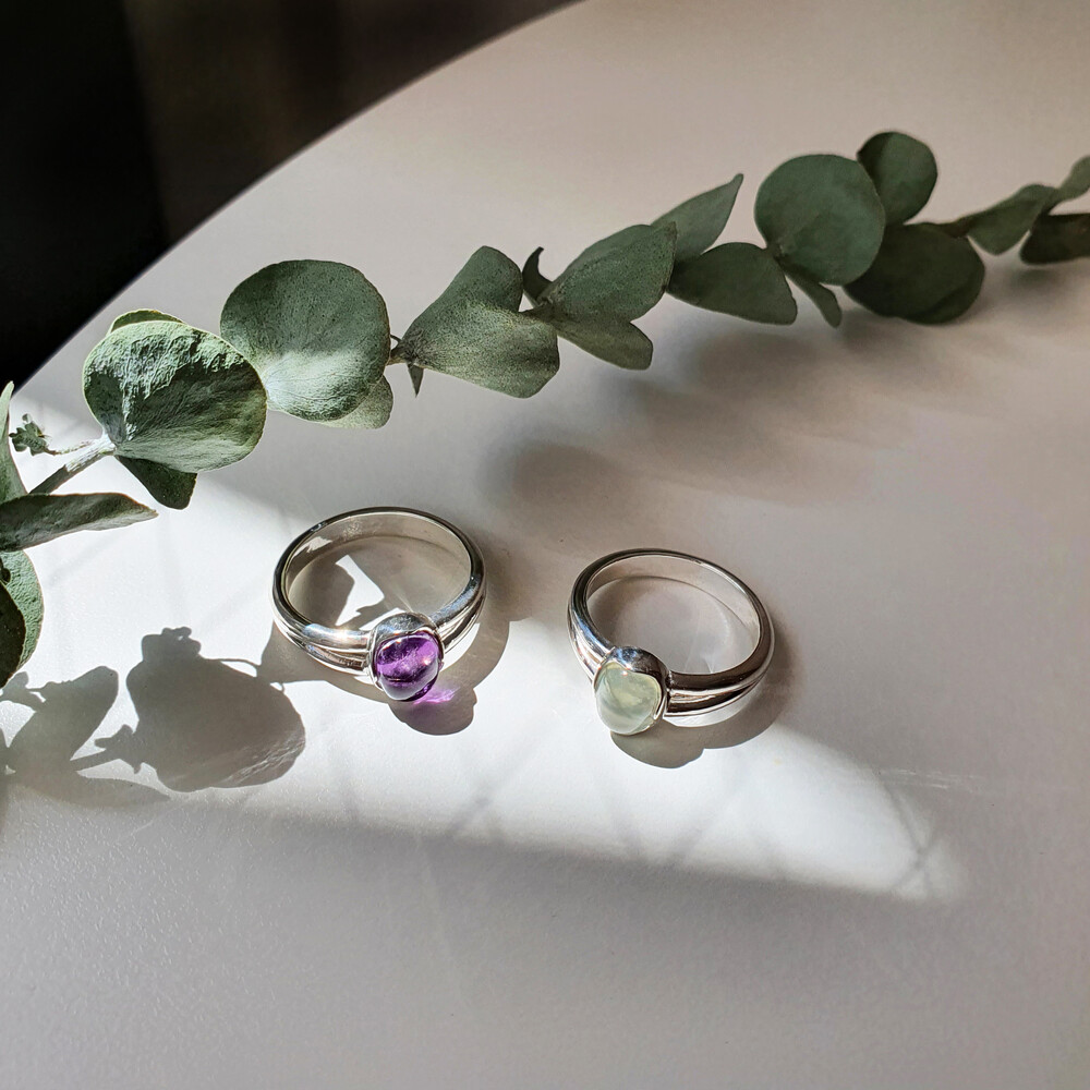 천연 원석, 자수정과 프레나이트를 셋팅했어요.
