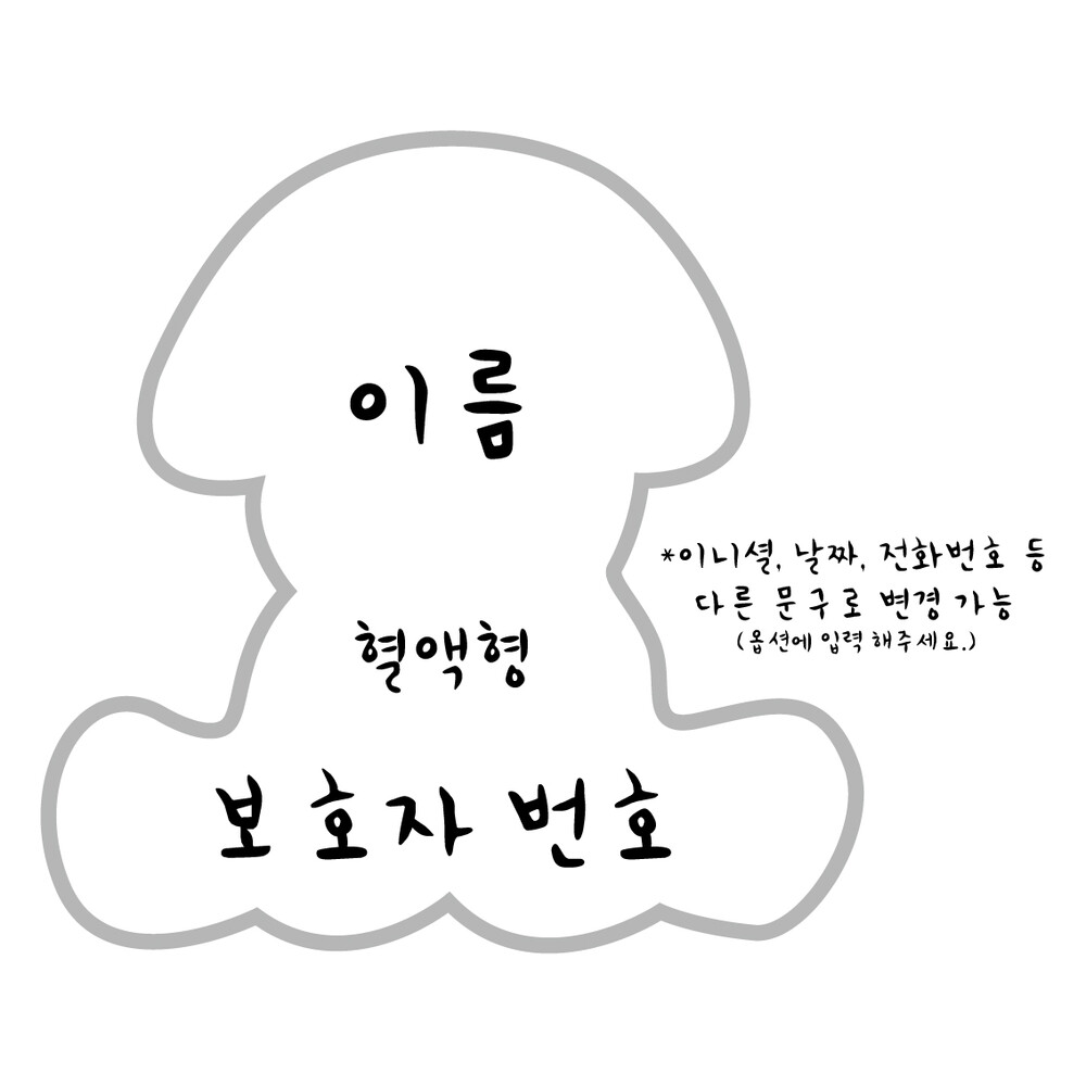 기본으로 이름, 혈액형, 보호자 번호 세가지로 각인됩니다.
